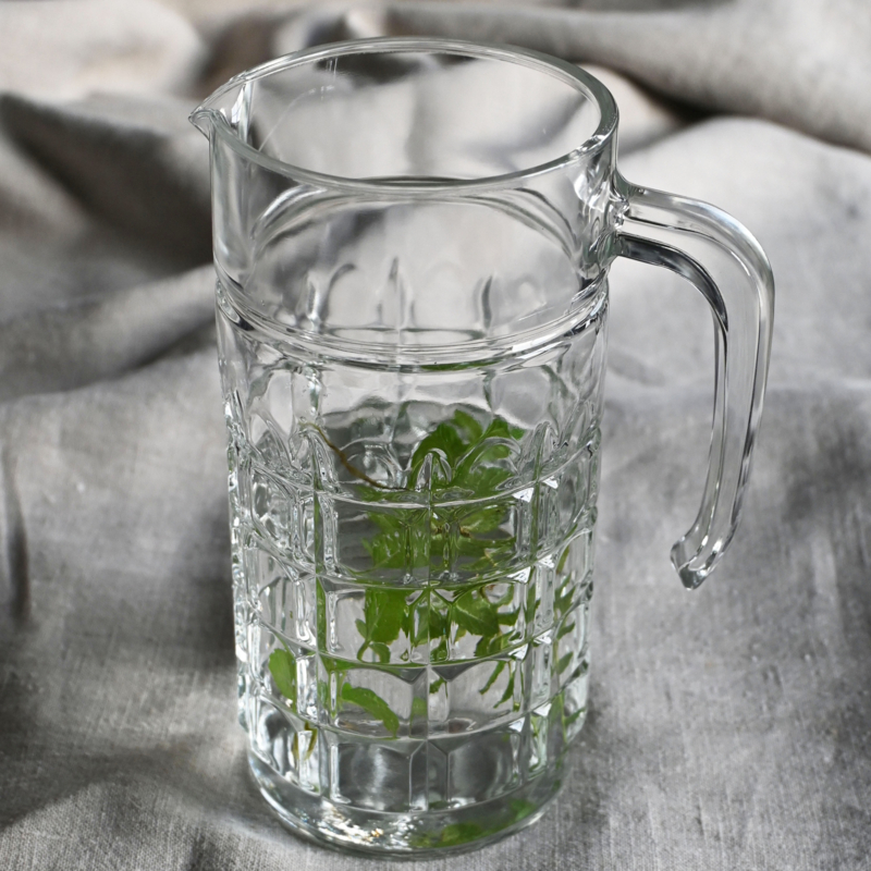 Karaf - vintage - Luminarc FranceBliekTofTafelen - Vintage servies - Vintage glaswerk - Karaf - Vintage - Helder glas - Met reliëf